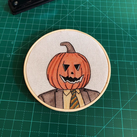 Bordado do Dwight cabeça de abóbora de 13 cm.